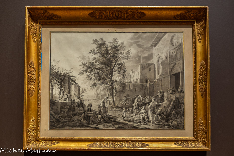 Arles, 1697 – Avignon, 1792. Pierre noire, plume et encre brune, lavis gris, lavis de sanguine et rehauts de gouache blanche sur papier. 1774.