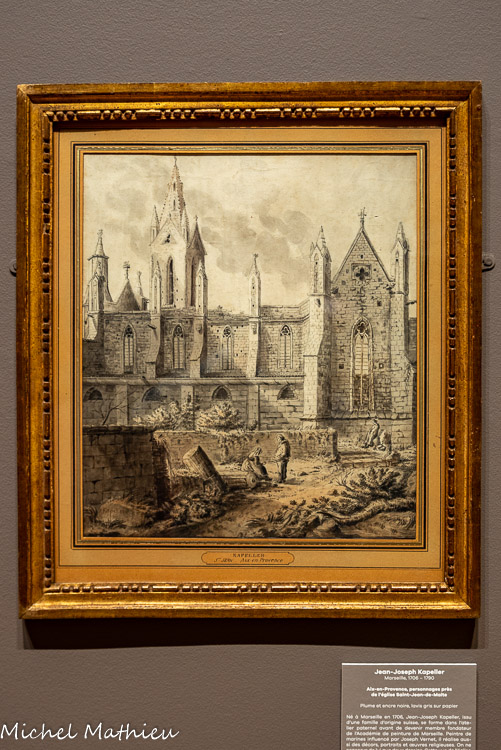 Né à Marseille en 1706, Jean-Joseph Kapeller, issu d'une famille d'origine suisse, se forme dans l'atelier paternel avant de devenir membre fondateur de l'Académie de peinture de Marseille. Peintre de marines influencé par Joseph Vernet, il réalise aussi des décors, portraits et œuvres religieuses. On ne conserve de lui que deux dessins. Cette vue de l'église gothique de Saint-Jean-de-Malte à Aix-en-Provence, présente déjà une atmosphère pré-romantique. Kapeller meurt en 1790, après une carrière de plus de soixante ans.