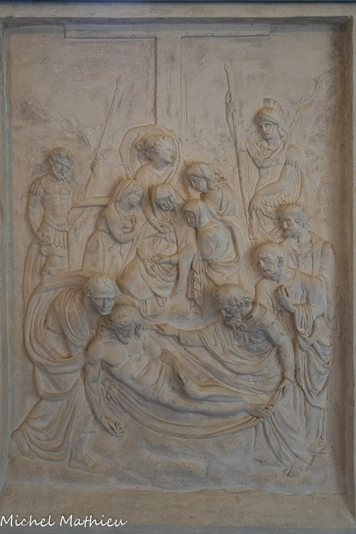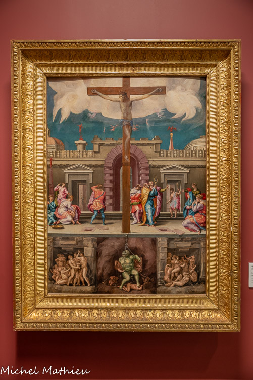 Le Christ en croix, allégorie de l'Église militante, triomphante et souffrante.