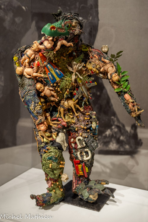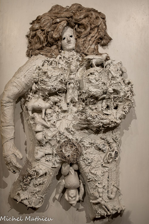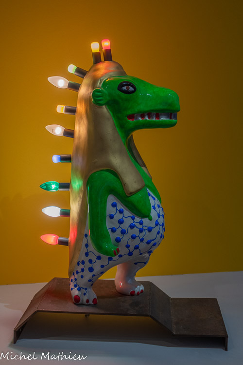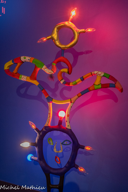 personnage protecteur mi-femme, mi-oiseau. 1981. Résine polyester peinte, socle en fer, éléments électriques et ampoules. Paris, musée des arts décoratifs.