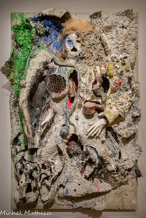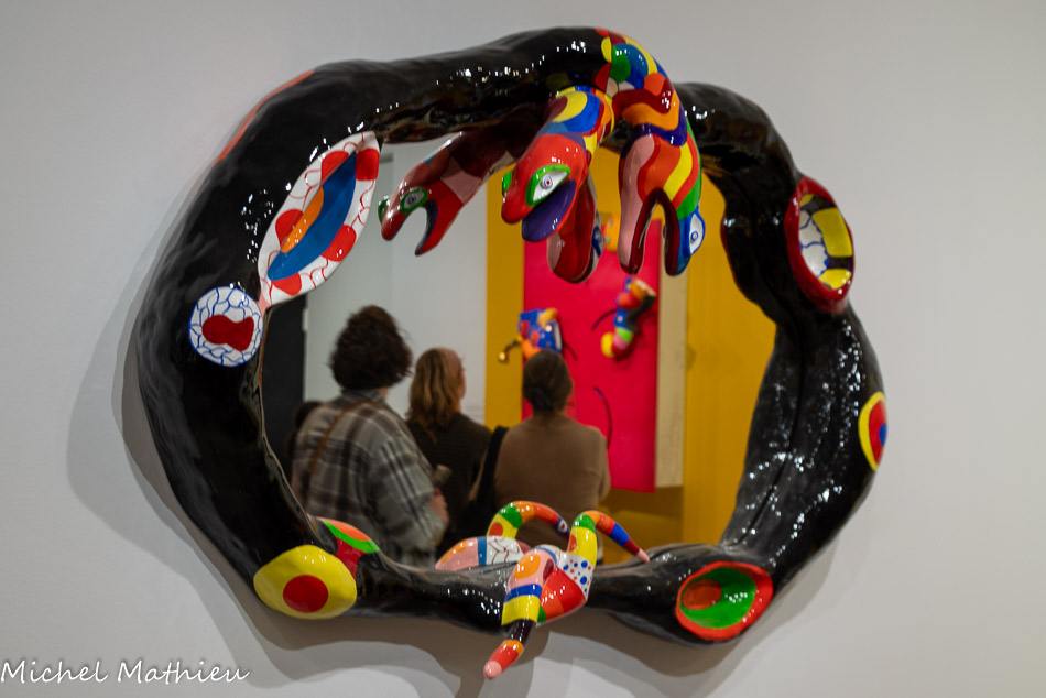 Avec la série des «Tableaux éclatés» (1992-1994), Saint Phalle rend hommage à Jean Tinguely, son compagnon, emporté par une crise cardiaque en 1991 : « À travers mes nouvelles œuvres, Jean, nous continuons à collaborer ». Ces pièces sont le moyen artistique qui lui permet de rester en contact avec lui au-delà de la mort et d’introduire pour la première fois l’élément qui caractérise toute l’oeuvre du sculpteur suisse: le mouvement. Les figures découpées se décomposent et se dispersent pour faire place à de nouvelles formes, comme le faisaient les « Méta-Reliefs » de Tinguely dans les années cinquante.