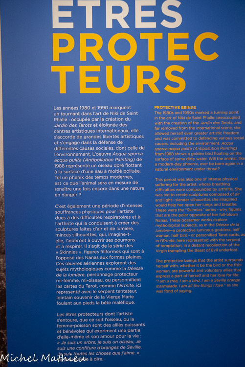 Les animaux de Niki de Saint Phalle prennent possession de certaines cartes des arcanes majeures des Tarots; ainsi, la carte du Soleil devient un oiseau aux ailes déployées, ou bien le Quetzalcoatl, serpent à plume dans la culture mésoaméricaine. « J’ai conçu la Soleil comme un oiseau proche de ceux qui se trouvent dans les légendes indiennes et mexicaines. L’oiseau est fa créature ia plus proche du soleil. ». L'artiste investit affectivement et spirituellement cet animal. Pour évoquer son mal-être et son adolescence vécue en « prisonnière » dans une tour d’ivoire symbolisée par les gratte-ciels de New York, elle se