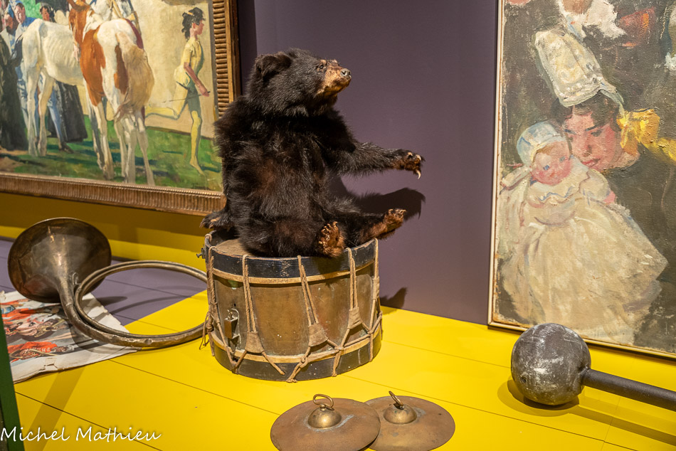 Toutes les bêtes présentées ont joué au théâtre, à l'opéra, au cinéma, au musée ou dans des performances. L’Ourson joue en public pour la première fois. <brBonimenteurs et Charmes. Cor, symbales, haltères