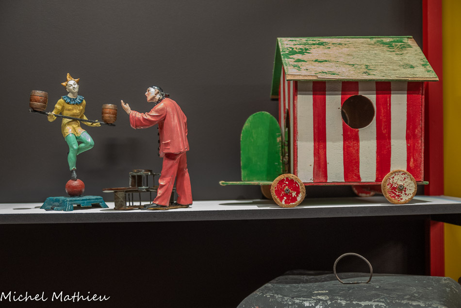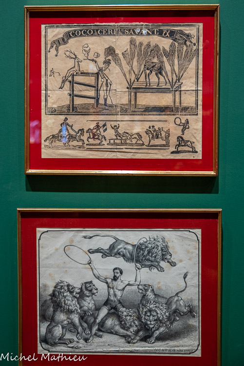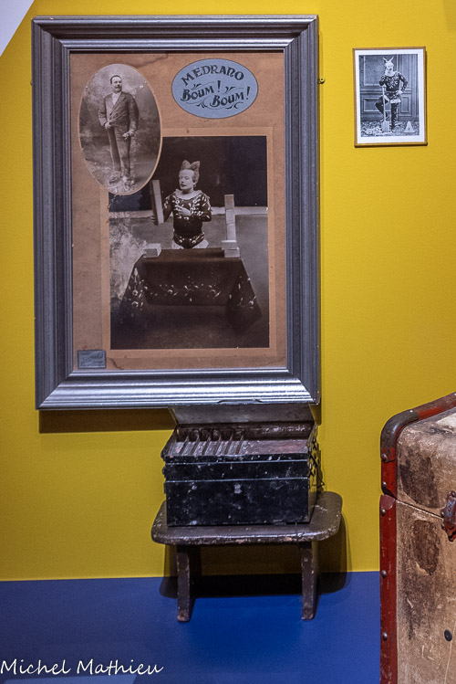 Le clown Boum Boum (Gerónimo Medrano, 1849-1912) est le créateur du célèbre cirque Medrano. Le clown Rhum (Enrico Sprocani, 1904-1953) est réputé pour avoir été l’un des meilleurs augustes de l’histoire du cirque. De la même manière que Boum Boum, il a commencé comme acrobate, jusqu’à ce qu’une chute l’oblige à changer de métier. Grock (Adrien Wettach, 1880-1959) était un clown musical, immensément célèbre. Surnommé le «roi des clowns», il percevait la moitié des recettes du lieu où il se produisait. Malle du clown Rhum
