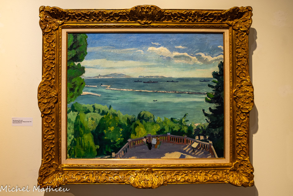 Familier de Marseille où il a régulièrement séjourné, Marquet a notamment posé son chevalet à l'Estaque et autour du Vieux-Port. De ce dernier, il livre ici une vision caractéristique de son style fondé sur une gamme chromatique comme assourdie, ni sombre, ni éclatante, mais aussi sur des formes synthétisées et fortement cernées qui peuvent évoquer la patte de Louis-Mathieu Verdilhan, dont il fait d'ailleurs la connaissance en 1916.