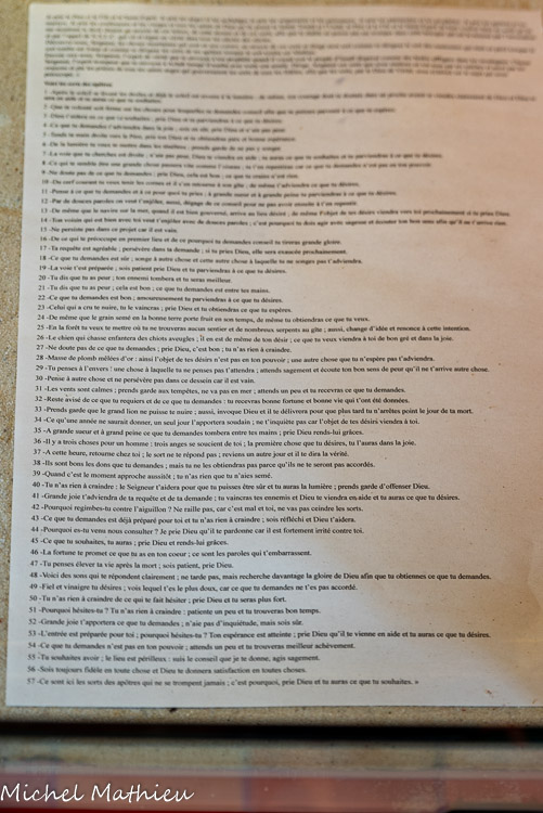 Les 14 petites ouvertures en plein cintre laissent à penser qu'il s'agit d'un sarcophage prévu pour deux époux (sarcophage matrimonial !). Cette particularité est extrêmement rare.