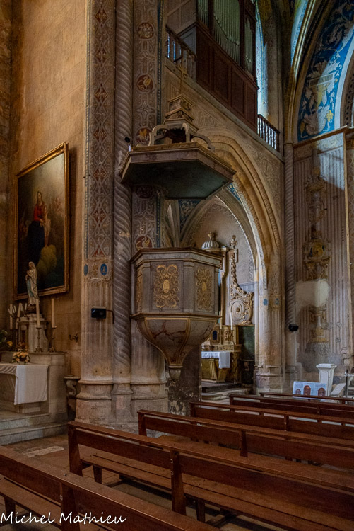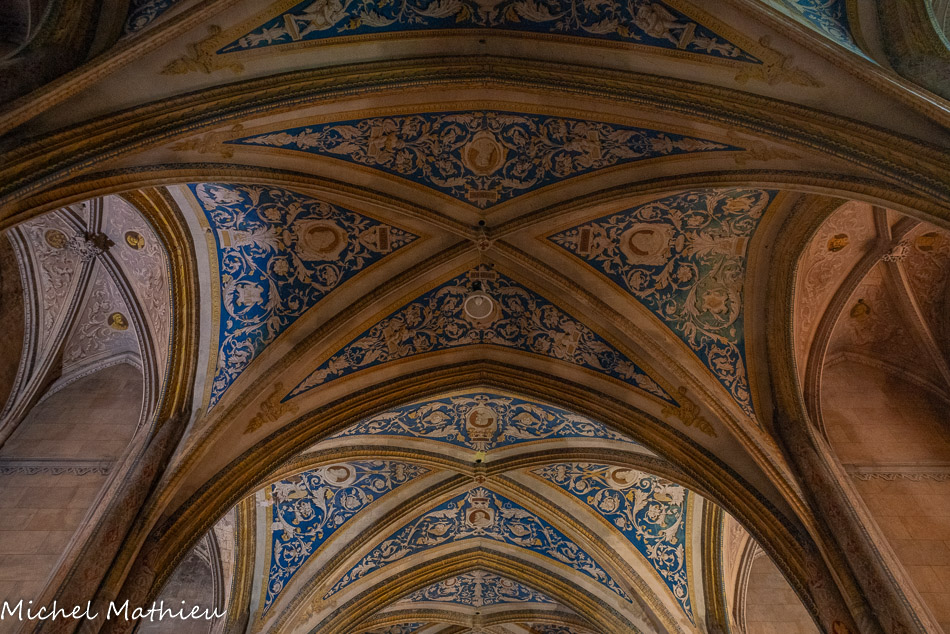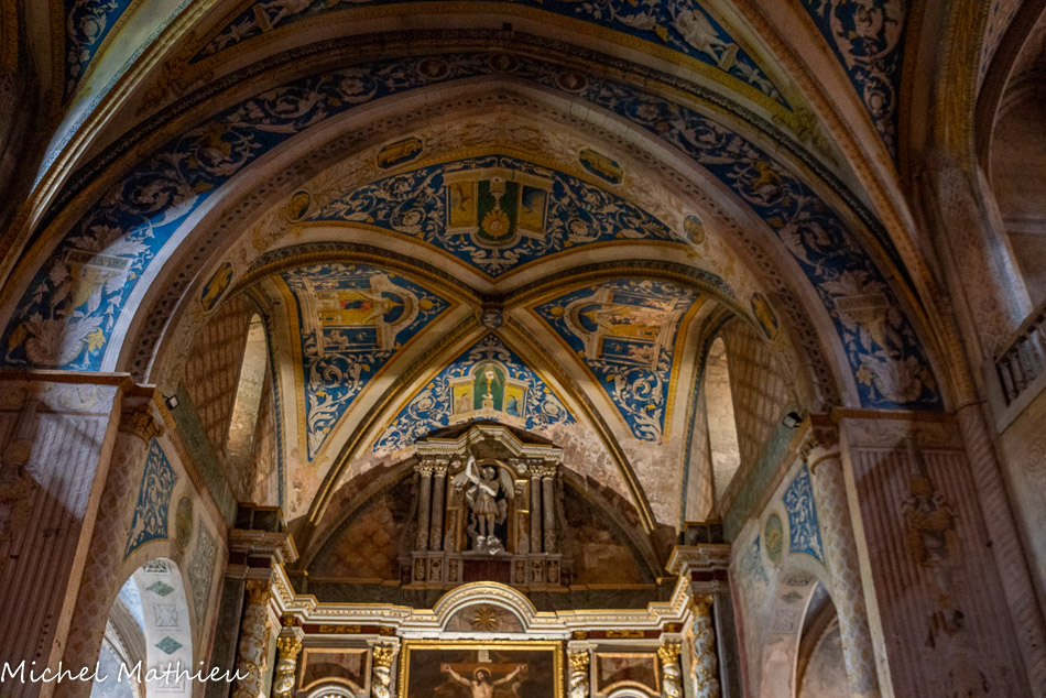 Voûtes : peintures style renaissance par Gayral en 1841, le bleu est du sulfate de cuivre.