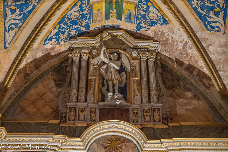 Au centre, niche cintrée avec statue de saint Michel terrassant le Démon, par Gavanon en 1824.