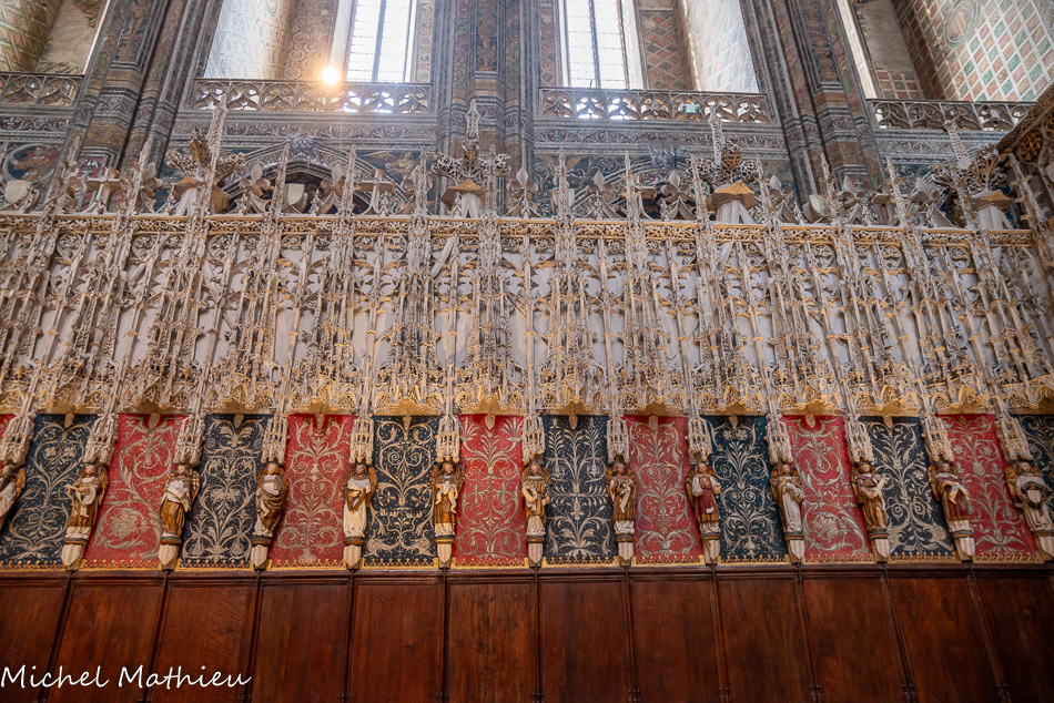 Annonciation. A droite, dans une architecture ouverte sur un paysage par une loggia, sainte Cécile joue de la viole de gambe. Un personnage féminin et trois angelots lui tiennent les partitions. Ces deux tableaux ont été réalisés par le peintre toulousain Jean-François Faure (1750-1824), élève de Despax, en 1779. Il fut envoyé de Rome par le cardinal de Bernis, archevêque d'Albi.