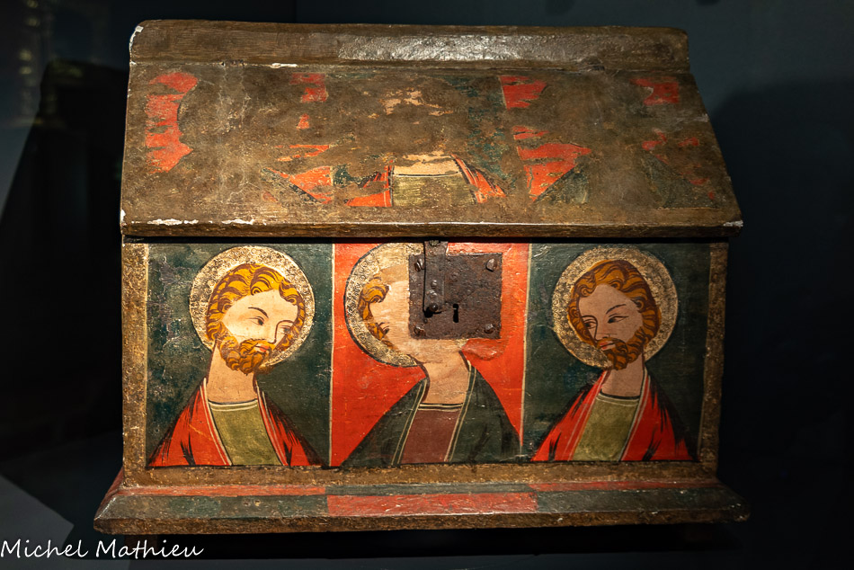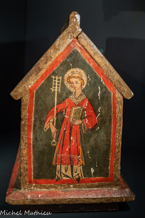 Sud-ouest de la France, 14e siècle Calcaire autrefois polychromé. Cette Vierge à l'Enfant provient de la collection du peintre toulousain Henri Rachou, qui la tenait lui- même d'un industriel qui « l’avaoit toujours eue dans la cour de son immeuble à Toulouse ». Les têtes ont été restaurées sous la surveillance du peintre.