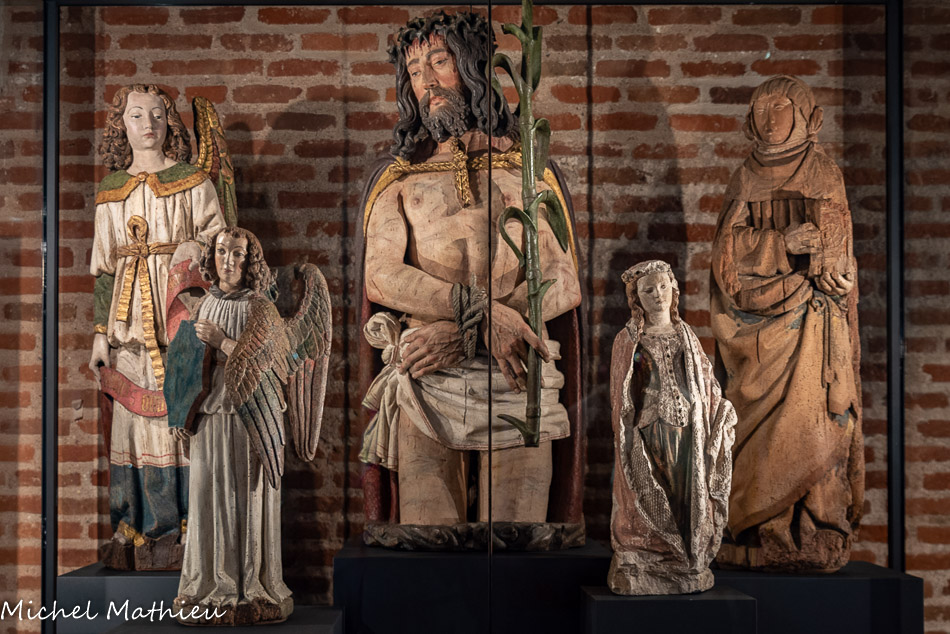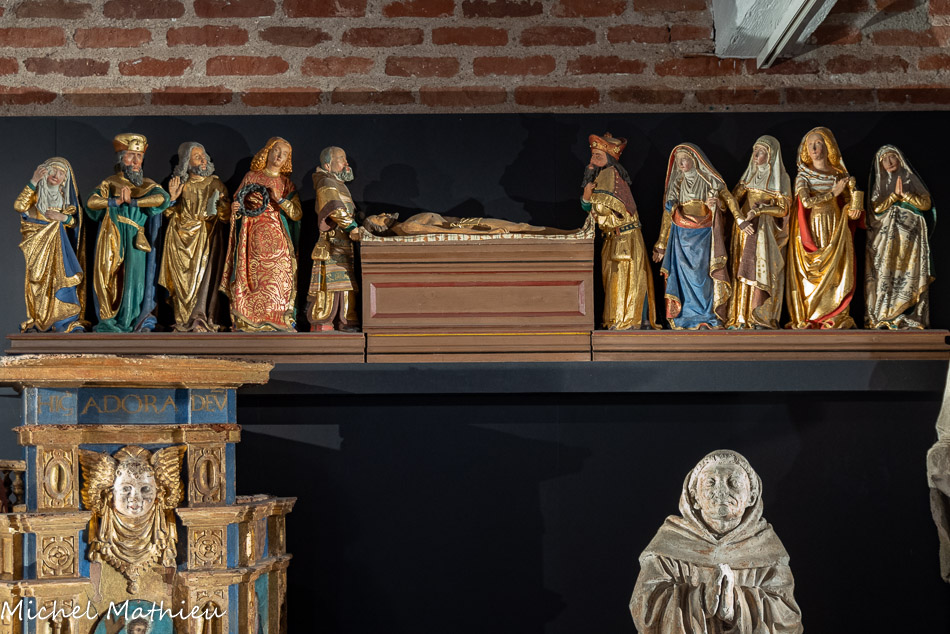 Ces deux sculptures étaient conservées jusqu'en 2010 dans la sacristie de l'église Saint- Salvy. Elles comptent parmi les plus beaux vestiges de la sculpture de la fin du Moyen Âge dans la région, en particulier la Vierge de pitié et les deux bustes de saintes femmes. Ces deux dernières provenaient sans doute d'une même Mise au tombeau.