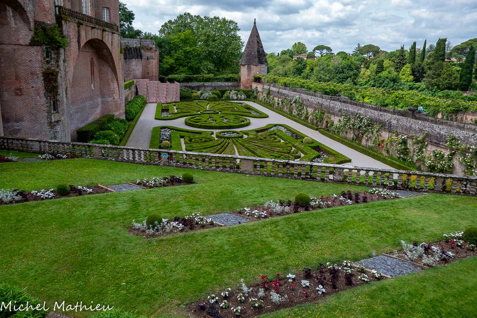 La forteresse épiscopale a été aménagée au fil des siècles en résidence princière. L’ancienne place d’armes est devenue au XVème siècle un jardin d’agrément selon la commande du premier archevêque d’Albi, Hyacinthe Serroni, suivant le plan des jardins à la Française. Les courtines, ancien chemin de ronde sont modifiées et transformées en promenade ombragée. Depuis le chemin de ronde, une vue panoramique s’ouvre sur les berges du Tarn en contrebas des remparts, le Pont-vieux, les anciens moulins et le quartier de la Madeleine sur la rive droite du Tarn.