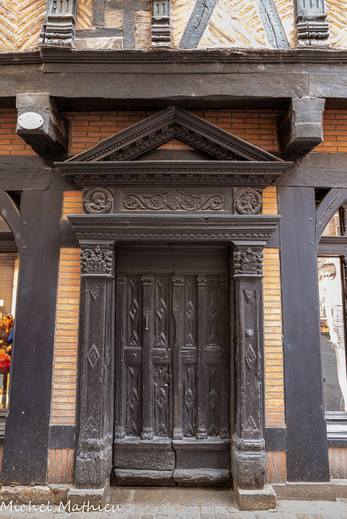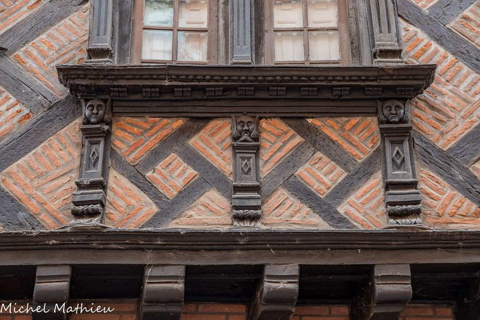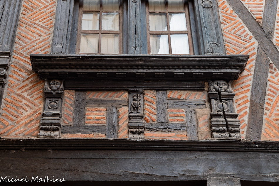 Maison Enjalbert (XVIe siècle). Personnage païen au centre, signe d'une évolution des mœurs.