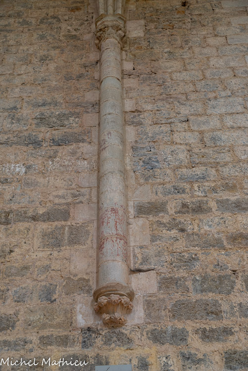 Le cloître. Les chapiteaux encastrés dans la façade occidentale sur cour.
