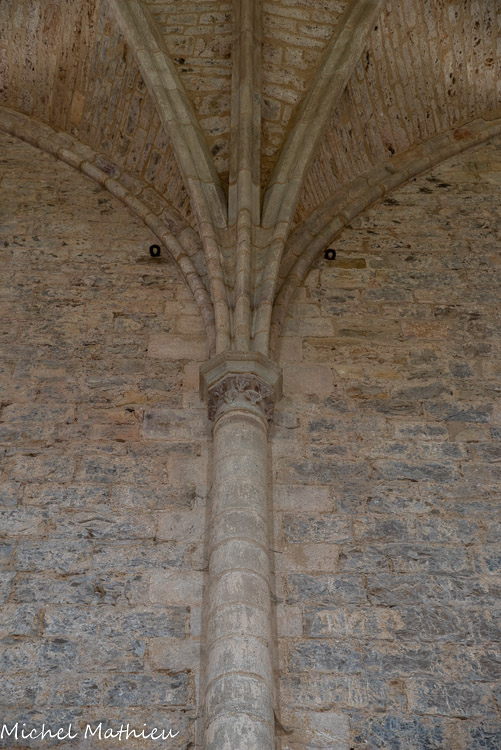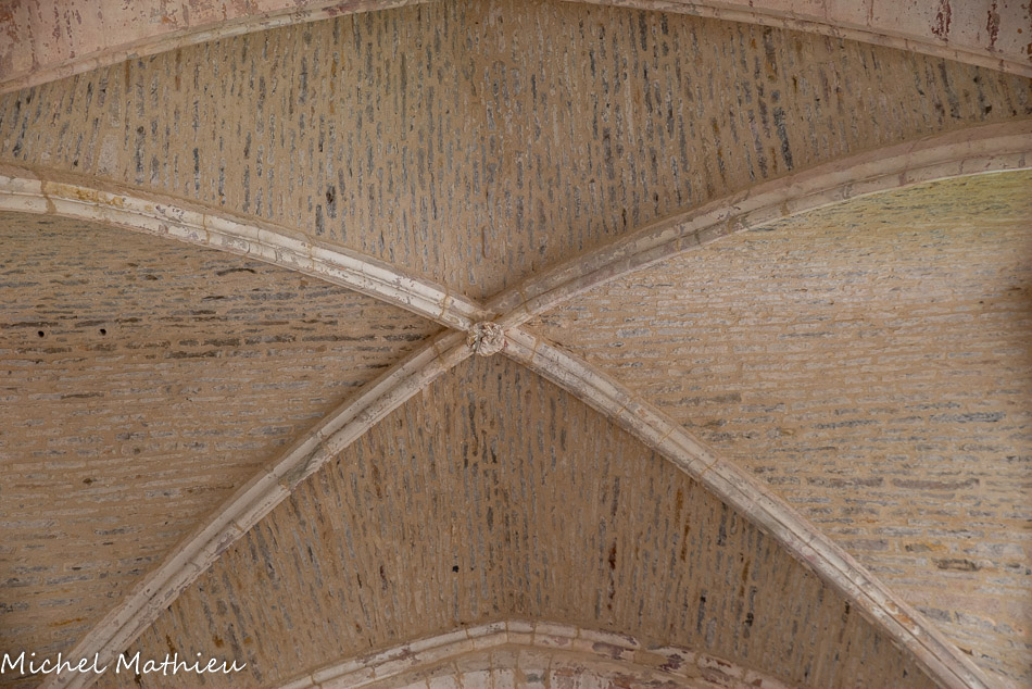 La salle capitulaire. Elle est couverte de six voûtes d'ogives reposant sur deux colonnes et des consoles placées dans les murs. Cette salle a été construite avant l'église, peut-être dans les premières années du XIIIe siècle.
