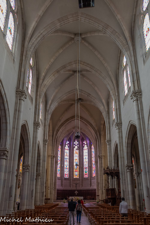 L'église comporte un chœur à sept pans, un transept et une nef à cinq travées.