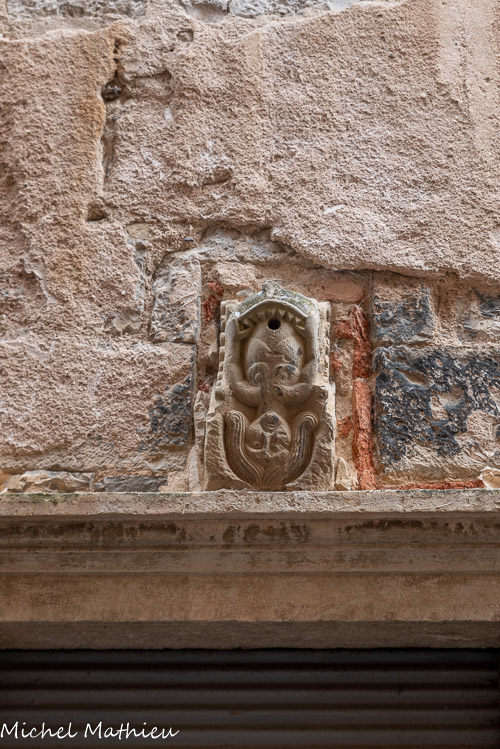 pierre, avec son chapiteau copié sur l'un des chapiteaux de la claire-voie, est due à la restauration du XIXe siècle.