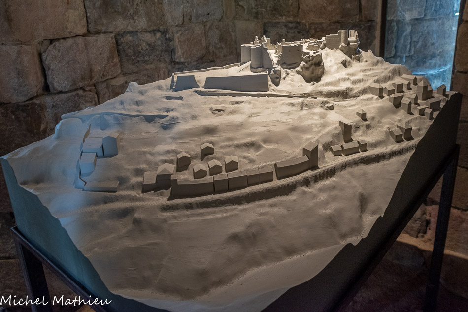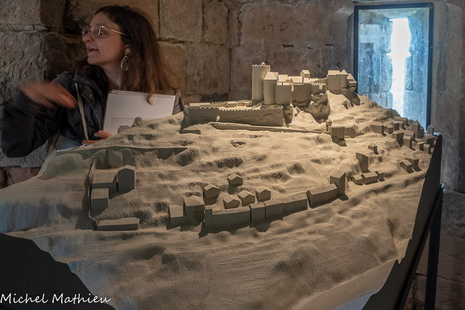 Maquette XIVe siècle. Le nouveau maître de Penne transforme alors le rocher en forteresse. Sur les bases de l'ancien village fortifié, il fait élever de nouvelles fortifications dont l'immense porterie ou châtelet à son entrée. La place forte a désormais, une double vocation. Au strict plan militaire elle protège la région mais elle abrite surtout les précieuses archives du comté de Toulouse.
