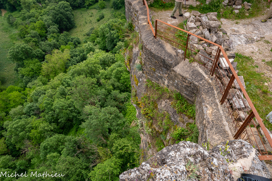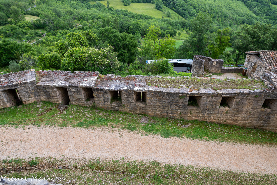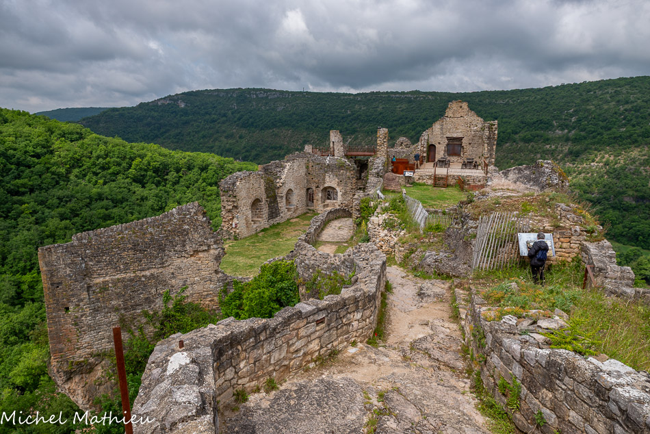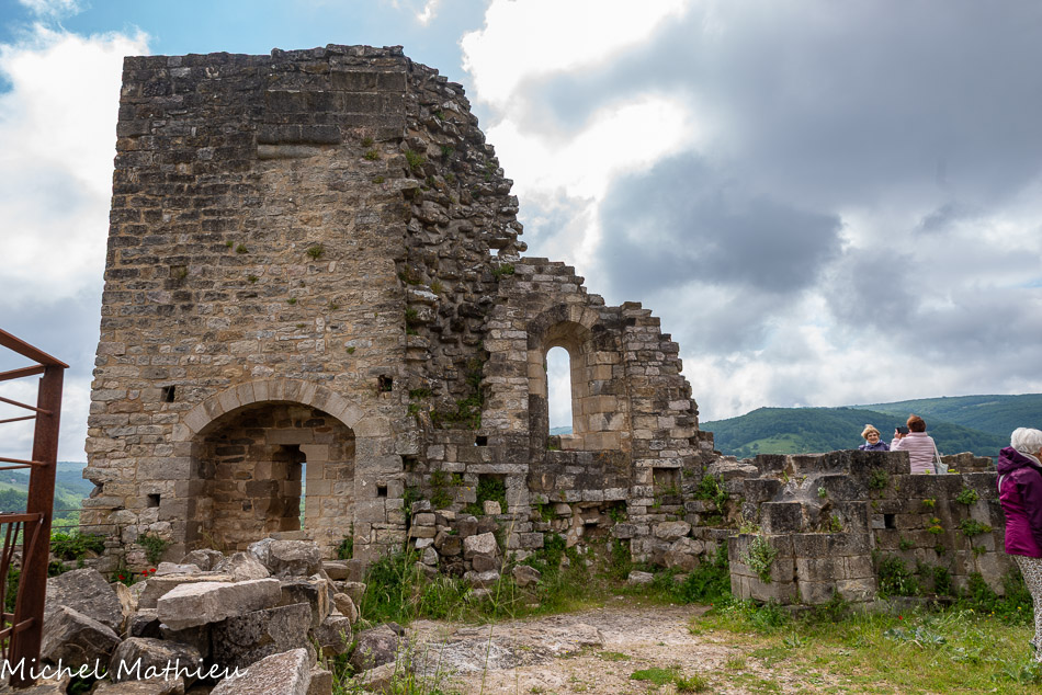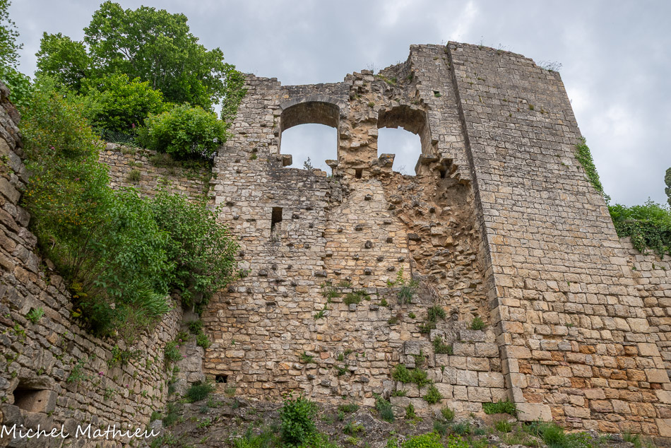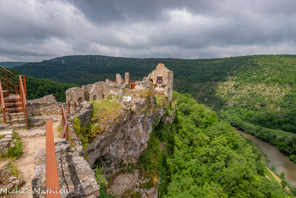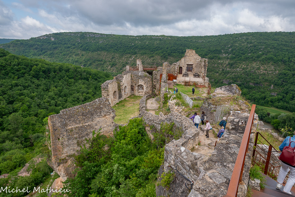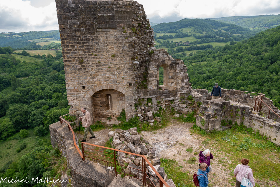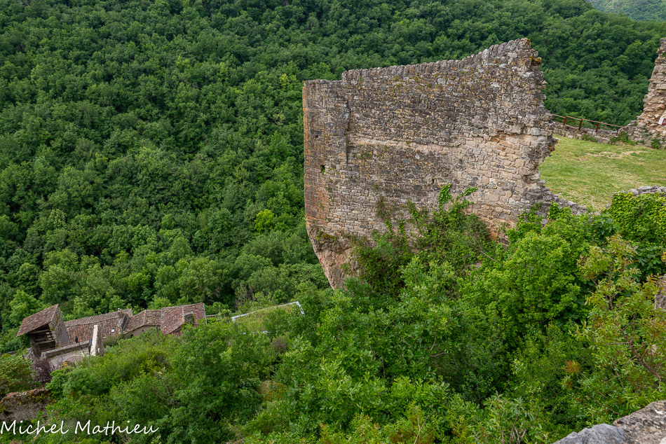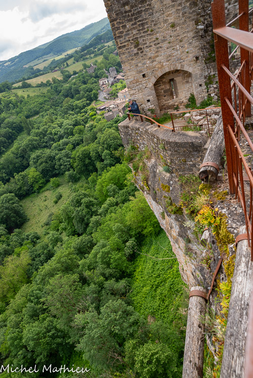 Le château vieux (à droite), sur des bases médiévales, montre un logis Renaissance. Brûlé pendant les guerres de Religion, il fut remanié au XVIIe siècle et au XIXe qui édifia l'audacieuse galerie surplombant le précipice.