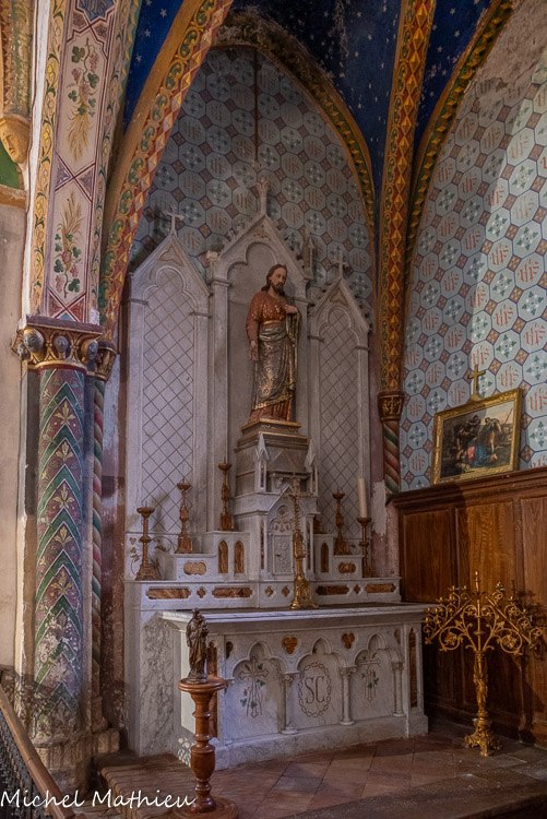 La chapelle dédiée à Ste Germaine. Le décor intérieur de l'église est réalisé entre 1857 et 1859 par le peintre Gustave Lupiat