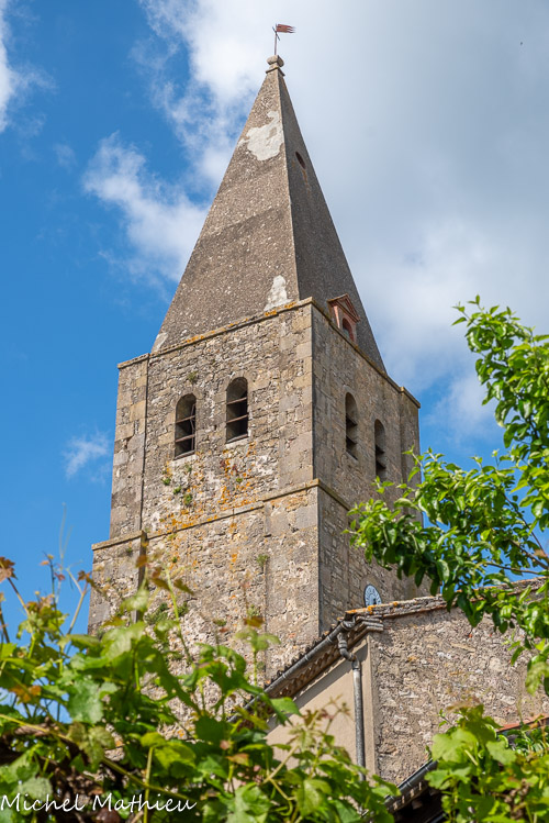 Le clocher : à l’origine il y avait un mur clocher typique de la région. L’édificatlon du clocher actuel, la Mairie avait lancé un emprunt estimé à 7 300 livres. Mlle Bonnavent prêta 3 000 livres à fonds perdus pour débuter les travaux (en remerciement, la première cloche porterait son nom). Les travaux débutèrent en 1777 et ne furent terminés qu’en 1805, après que plusieurs problèmes de construction aient été résolus. Le haut de ce clocher, haut de 45 m, devra être refait en 1807.