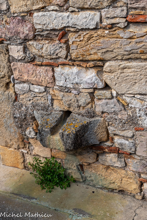 En 1984, le décapage de l'enduit du XIXe siècle permet la mise à nu des très belles pierres de pays du chœur et du bas du mur. A droite, le monument aux morts.