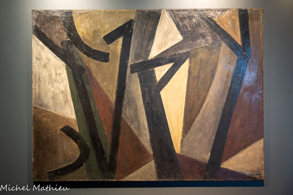 Peinture sur toile et sur papier, eau-forte, verre inventé pour les vitraux de Conques. La collection présentée s’étend de 1946 à 2012.
