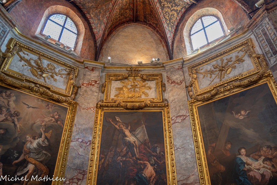 o le Mariage de la Vierge Marie, d'après Carle Van Loo. Ces tableaux sont placés dans des cadres en gypserie dorés à la feuille.