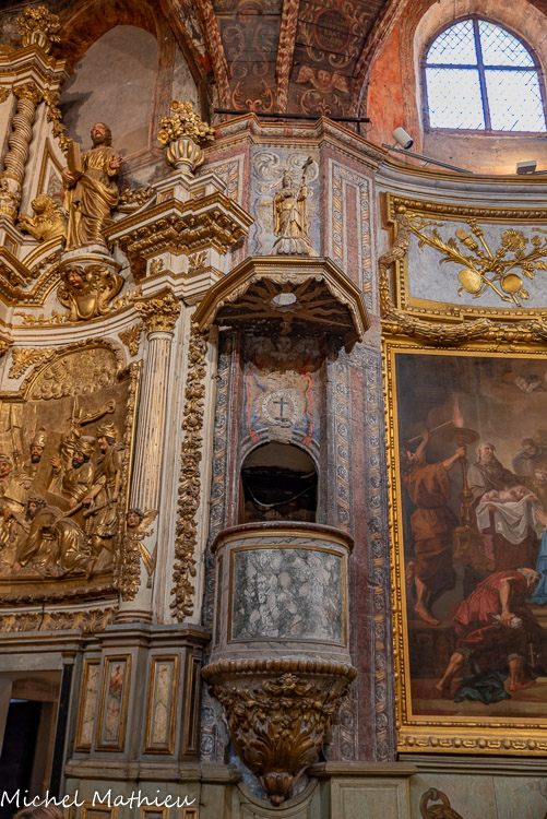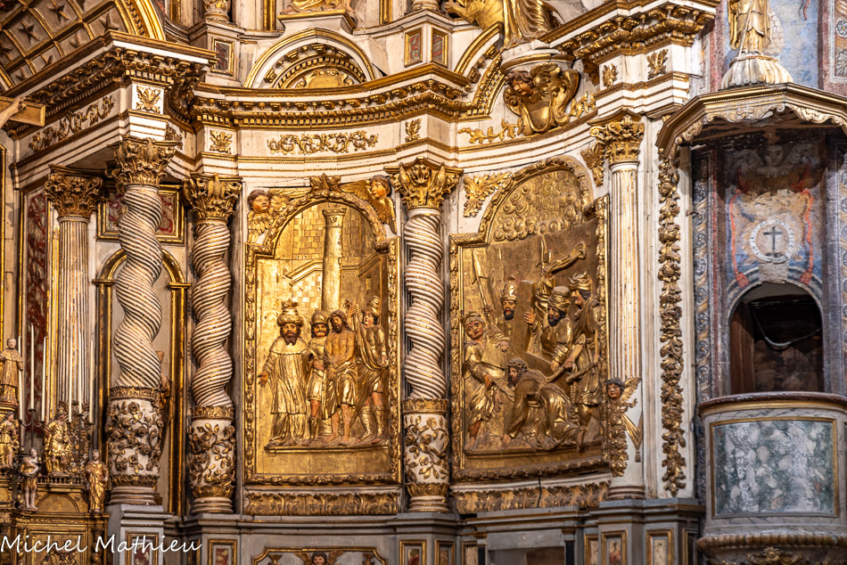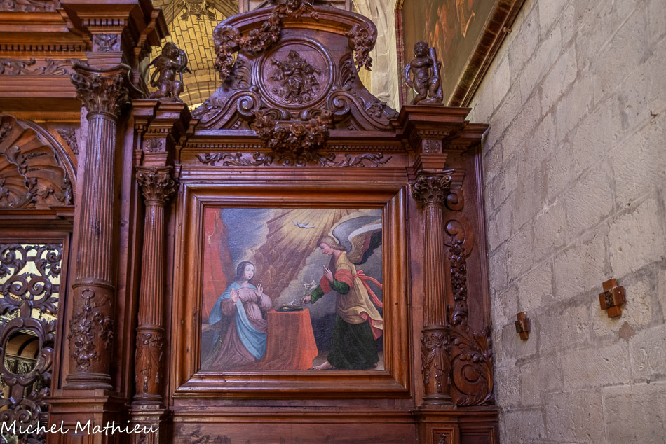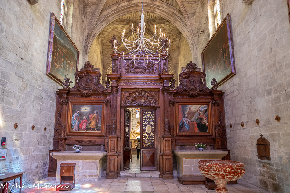 Ancienne chapelle des Pénitents noirs. Les panneaux, exceptionnels dans leur traitement, illustrent les principales scènes de la Passion du Christ : le baiser de Judas dans le jardin des Oliviers, la Flagellation,