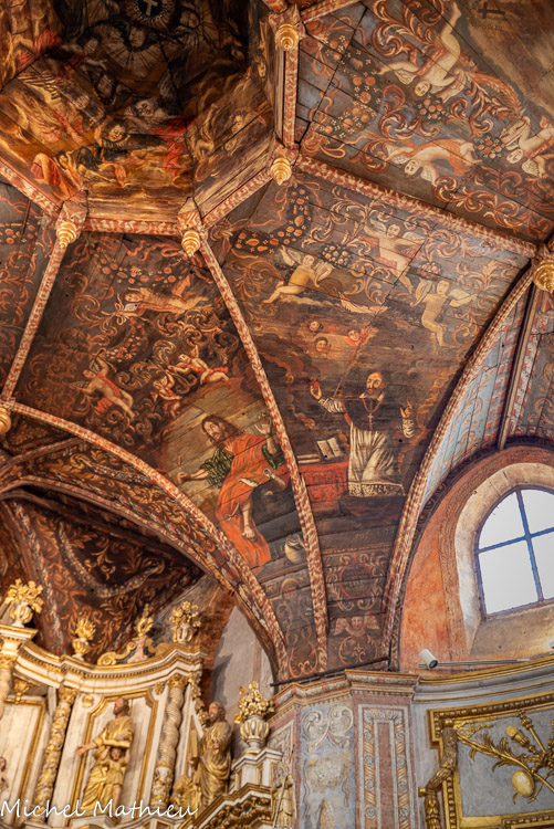 Ancienne chapelle des Pénitents noirs. La coupole centrale de forme semi-hémisphérique en partie haute comporte, en partie basse, une nervure de plan octogonal. Des clefs pendantes tournées et moulurés sont installées à chacun des 8 angles de la nervure.
