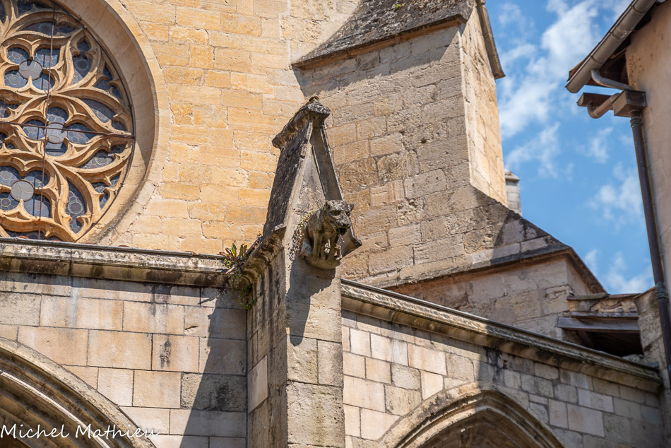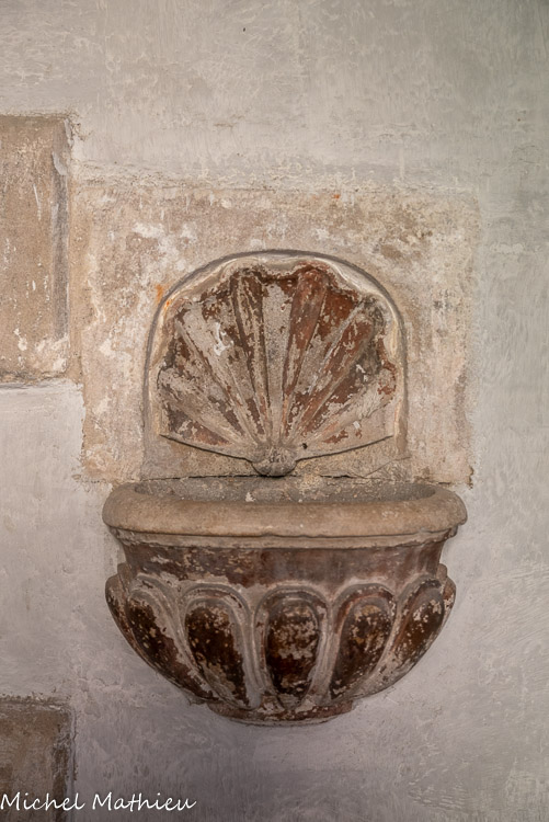 Du coté des murs extérieurs, les croisées d’ogives sont reçues sur quarante-deux culots d'une grande variété de motifs. La porte Nord qui donne accès au réfectoire pour le repas des dimanches et fêtes liturgiques, se trouve tout naturellement à côté du lavatorium ou fontaine.
