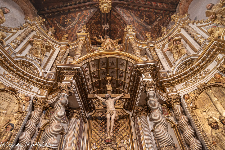 Ancienne chapelle des Pénitents noirs. L’Ecce Homo et le Christ sur le chemin du Calvaire. Un jeu de colonnes cannelées et torses les encadre, leurs chapiteaux étant de style composite avec des feuilles d’acanthe et des animaux.