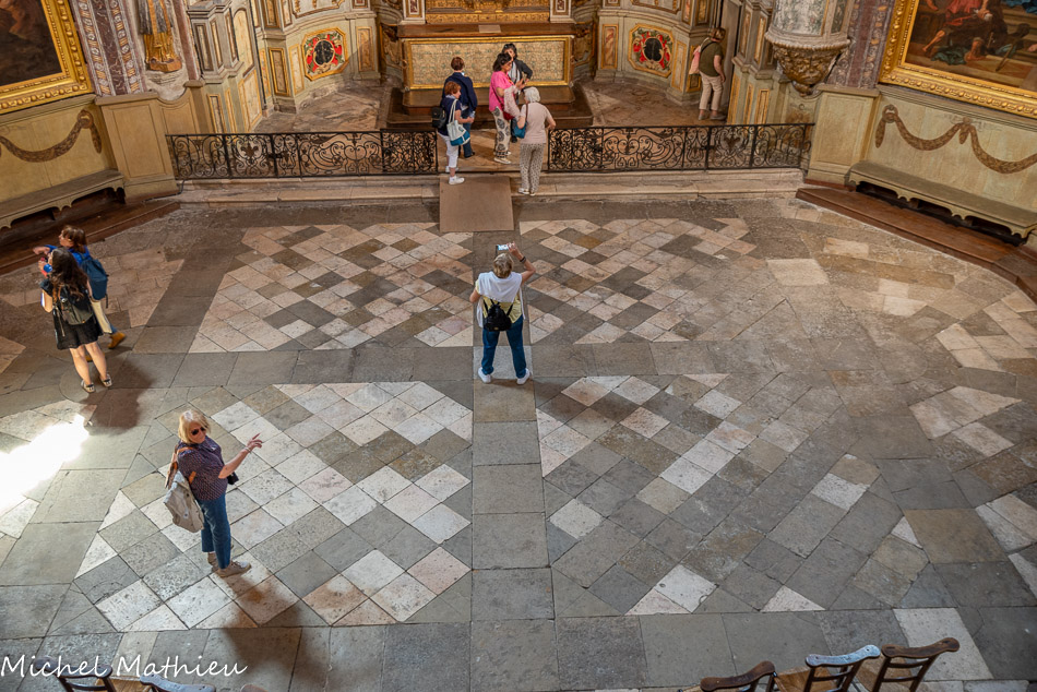 En abscisse, sont désignés les quatre autels de célébration : maître autel - église ; autel de la vierge - salle capitulaire ; autel des obédiences - chapelle de la trésorerie ; autel funéraire - chapelle funéraire (petit cloitre)