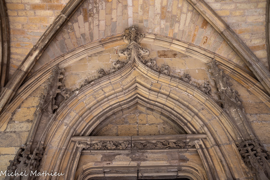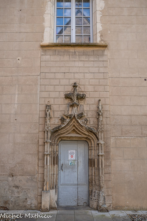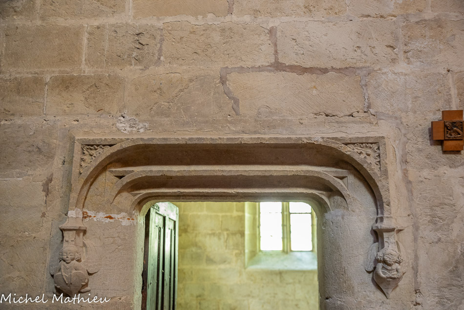 Une porte d'entrée flamboyante existe face à l'entrée de la chapelle qui permettait l'accès au logement du prieur.