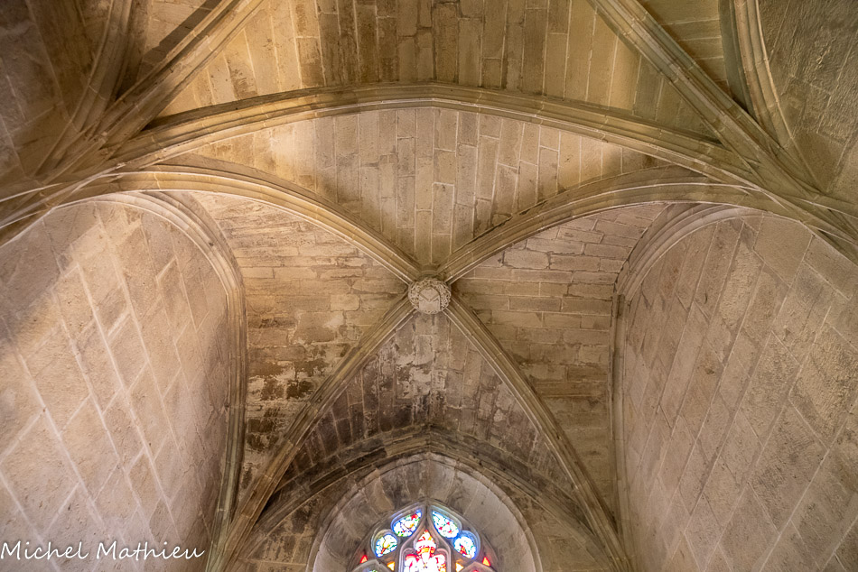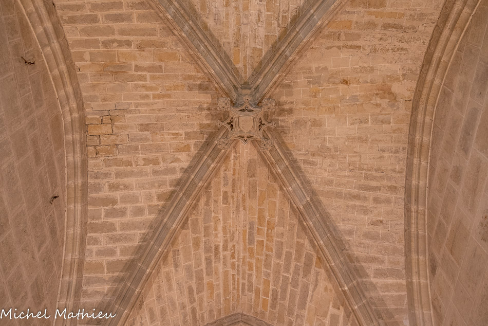 Le chapitre. Les croisées d'ogive de la voute sexpartite de l'abside. La clé de voûte portent les armes de Vésian.