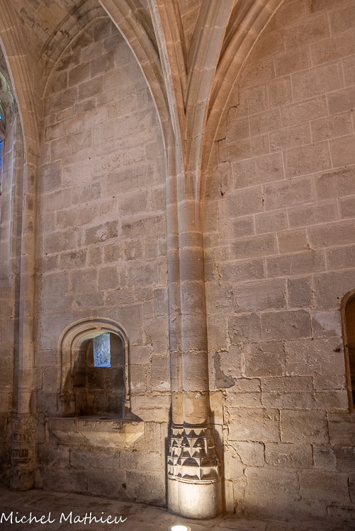 Le chapitre. Une des colonnettes engagées formant nervures jusqu'au sol.
