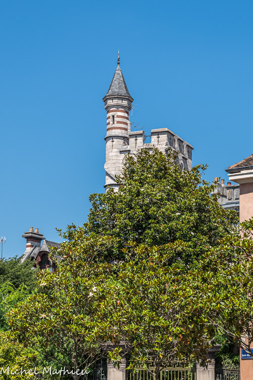 - d'architecture « à la française » : encadrement des ouvertures en pierres taillées, régularité, symétrie, mise en valeur de l'avant corps central ;