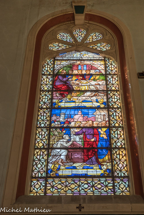 La chapelle du XIXe est ornée de vitraux du XVIe siècle qui proviennent de la première salle de malades édifiée à la Renaissance. Ces vitraux sont entourés d'entrelacs. Chacun raconte une histoire, tirée de la Bible, plus précisant des éléments de l'Ancien et du Nouveau Testament. La transfiguration.