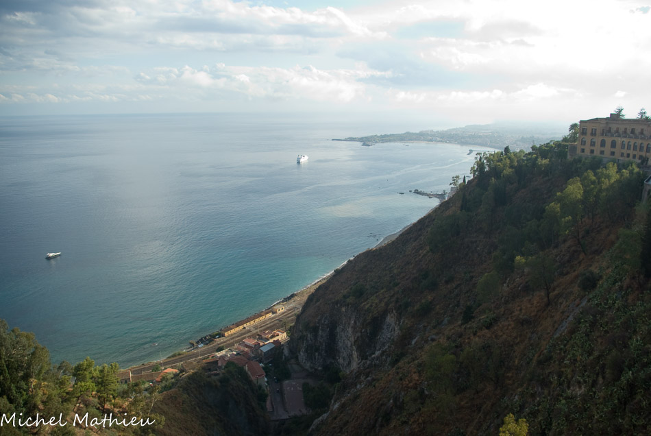 Giardini NaxosVue vers Taormine
