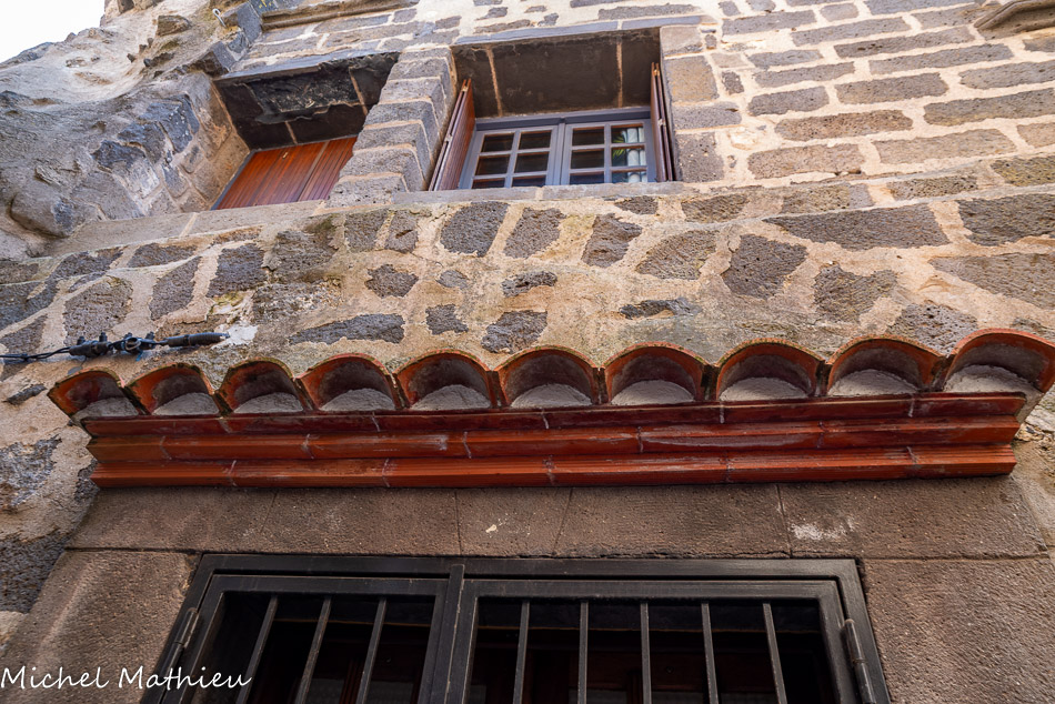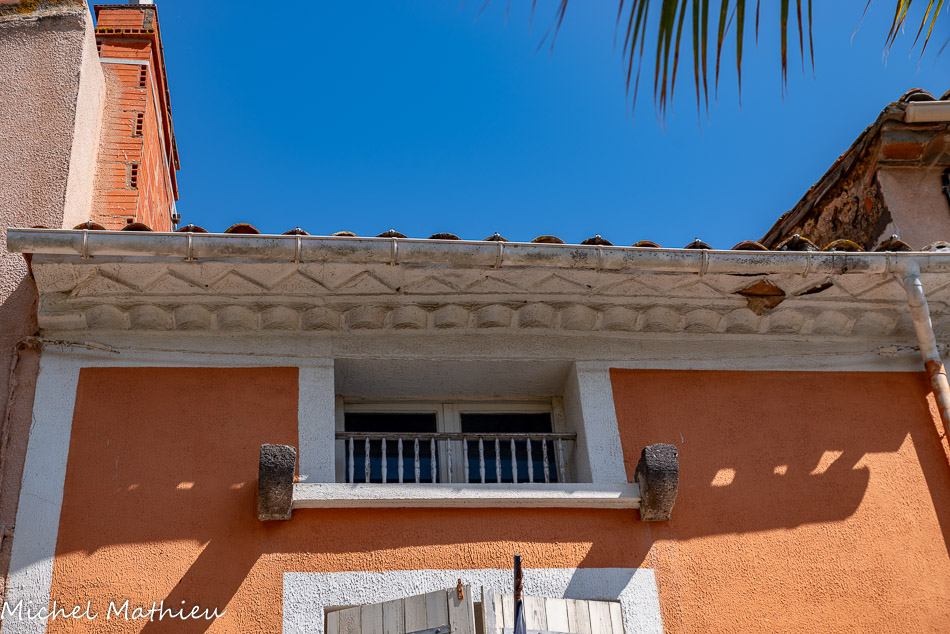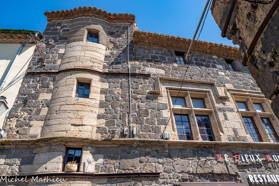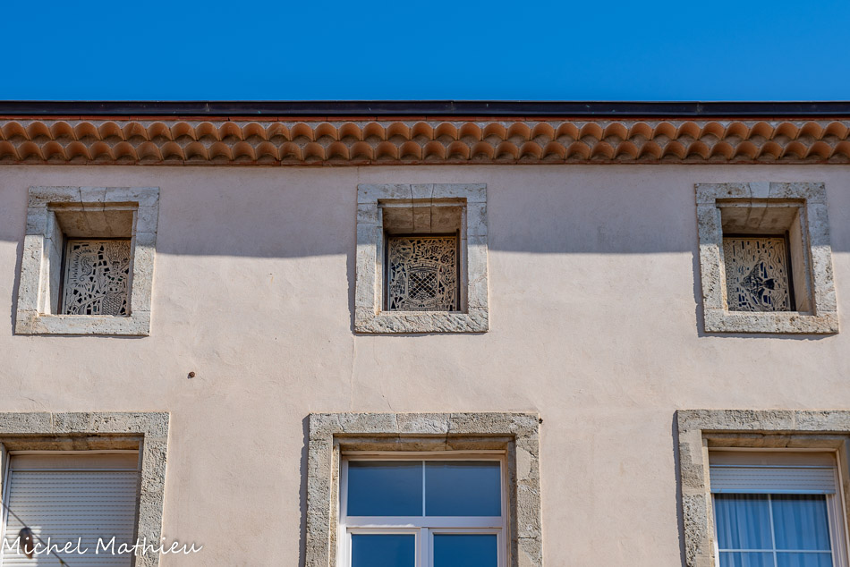 LA MAISON DES ÉVÊQUES. Cette imposante maison est traditionnellement appelée « Maison des Évêques d'Agde ». Un écusson sur la façade est orné de lettres en caractères gothiques. Il s'agit du blason d'un marchand, probablement le propriétaire de la demeure. L'accès aux étages se fait par un escalier à vis placé dans une tourelle en saillie sur la façade. L'étage noble est éclairé par deux grandes fenêtres à meneaux réunies par un larmier. L'utilisation du basalte mêlé à du calcaire coquillier de Nézignan-l'Evêque est un signe de grande richesse. La plupart des maisons du village étant construites en basalte local, pierre extraite des anciens volcans des alentours (Roque-Haute à Vias, Mont Ramus à Bessan, et Mont Saint Loup à Agde).