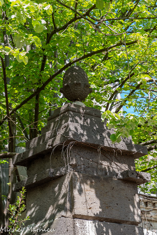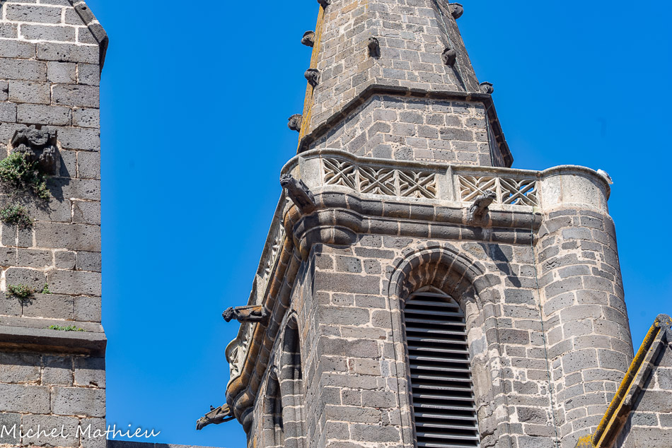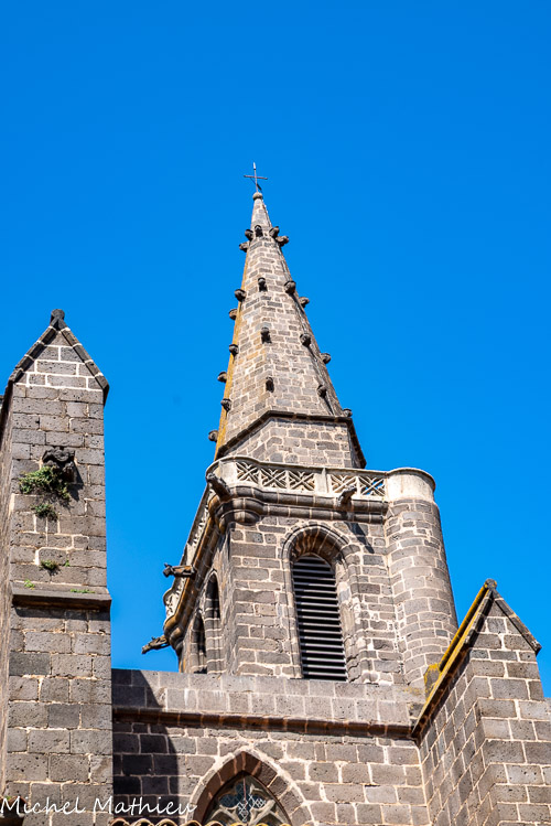 Il est surmonté d'une flèche octogonale érigée également en basalte.