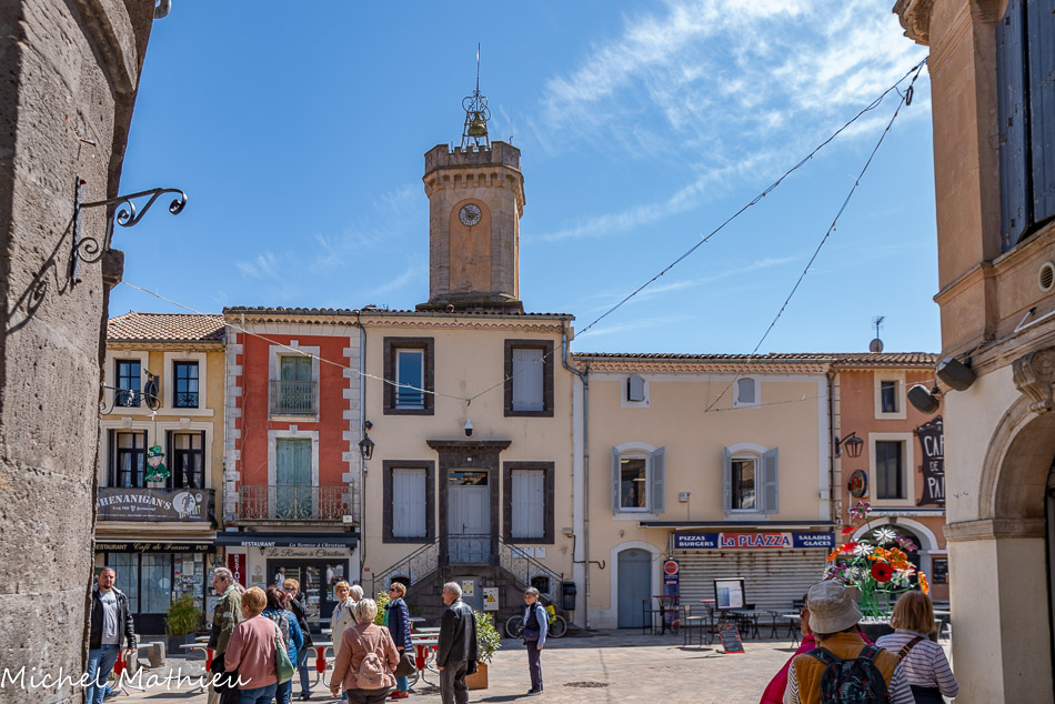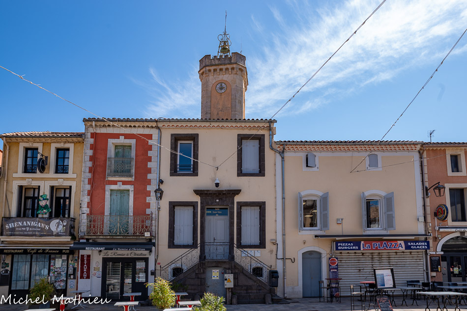 Place du 14 juillet. L'ancienne maison consulaire est située près de la fontaine. Le consulat, institution municipale des villes du Midi, est mentionné pour la première fois en 1270. Depuis cette époque et jusqu'en 1976, ce bâtiment fera office de mairie. L'escalier extérieur permettait d'accéder à la salle de réunion des consuls. On peut voir à l'arrière l'ancien beffroi de la maison commune. Il abrite la cloche de la communauté et l'horloge publique. La partie haute, portant un crénelage, a été reconstruite au XIXe siècle.