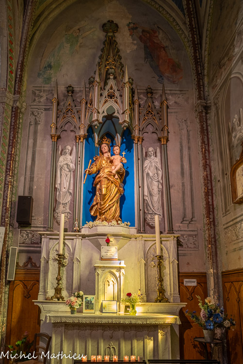 L'une des chapelles du transept est dédiée à saint Antoine et sainte Philomène. A gauche, Jeanne d'Arc. A droite,te Thérèse de Lisieux ou de l'Enfant Jésus.
