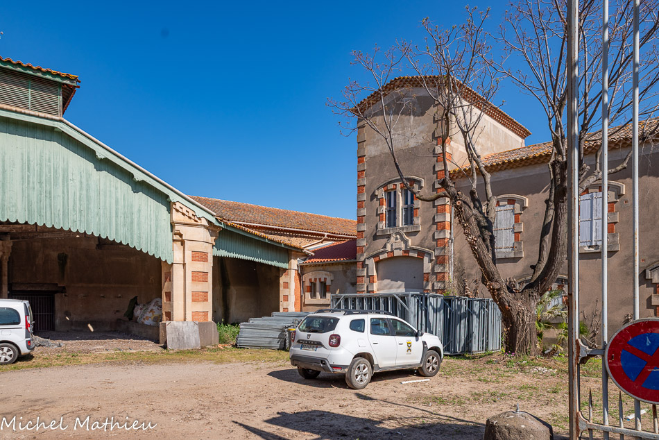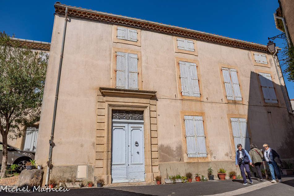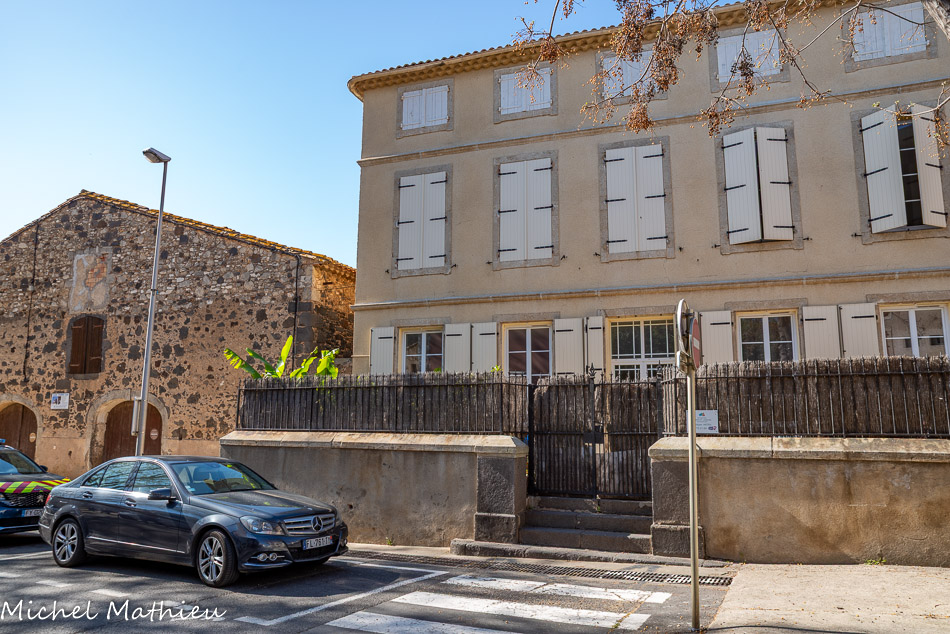 citerne de Portiragnes faisant face à un bel exemple d’hôtel particulier du XVIIIe siècle avec de grandes fenêtres de style classique et pour une façade à la symétrie parfaite.