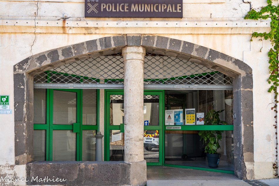 De dimensions modestes, on y accède, par deux escaliers latéraux en pierre noire de basalte, menant à un "balcon", sur lequel les Maires ne manquèrent pas de prononcer de solennels discours.