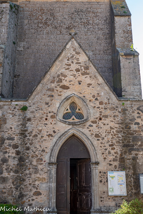 Cette façade est percée en son centre d'un petit portail de style gothique enserré entre deux puissants contreforts et surmonté d'une fenêtre cintrée à simple ébrasement.