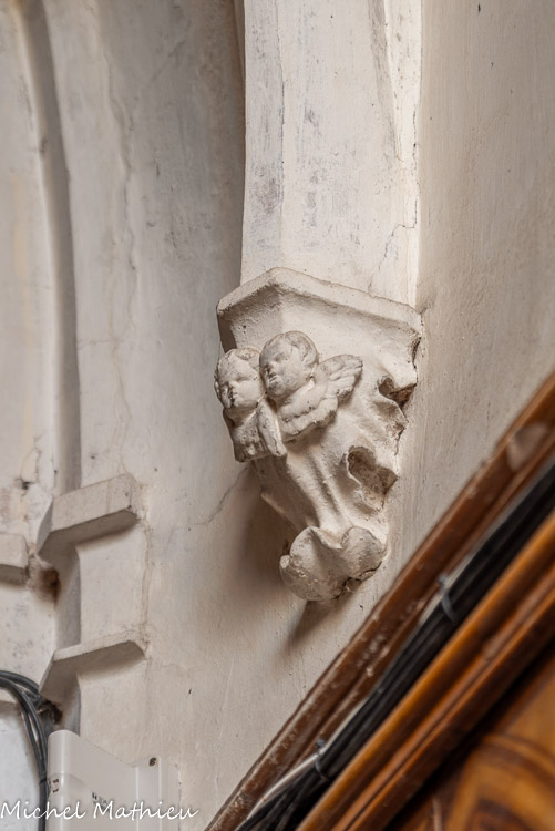Sainte Elisabeth de Hongrie et saint Joseph. A droite, une tête sculptée termine la retombée d'ogive.