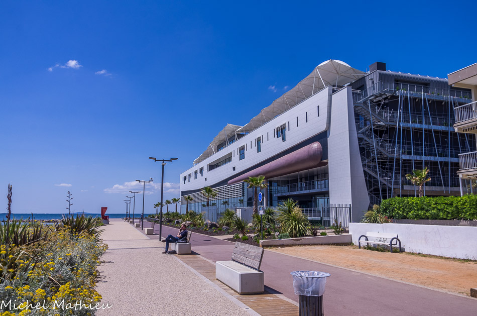 Une architecture à l’image d’un bateau Le nouvel établissement thermal de Balaruc-les-Bains, a la silhouette élégante d’une coque de bateau de 16 800 m² ancrée sur le bord de l’étang de Thau. Le bâtiment est conçu par les agences DHA (Lyon) et AMG Architectes du montpelliérain Marc Galligani qui a aussi assuré la réalisation, empruntant son esthétique à l’univers maritime.