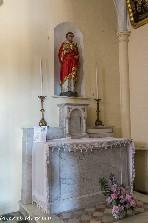 La chapelle Saint Laurent fut jadis consacrée au saint Crucifix, dévotion en grand honneur au XVIIe siècle, attaquée par les protestants. Lors des restaurations contemporaines, la famille Rochier donna, en souvenir de sa fille Laurence, la statue de Saint-Laurent, le diacre de l'église romaine, martyrisé en 258 pour n’avoir pas voulu livrer le patrimoine des pauvres.