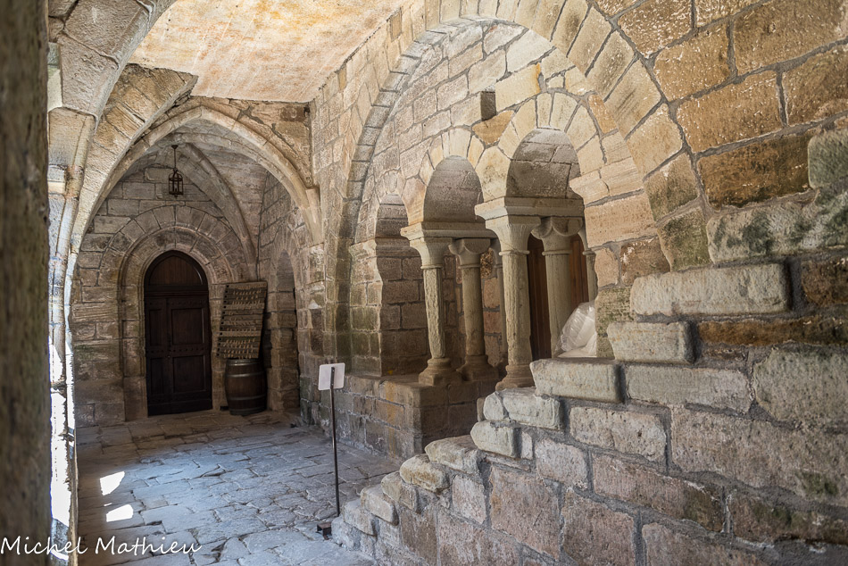 A l'est, le "couloir des morts", la salle capitulaire, l'entrée de l'église. L'ouverture de la salle capitulaire présente sous un grand arc de décharge trois arcades en plein cintre dont les arcs très profonds prennent appui sur deux groupes de trois colonnettes posées sur un mur bahut. Les chapiteaux romans sont de forme cubique ou à corbeille évasée.